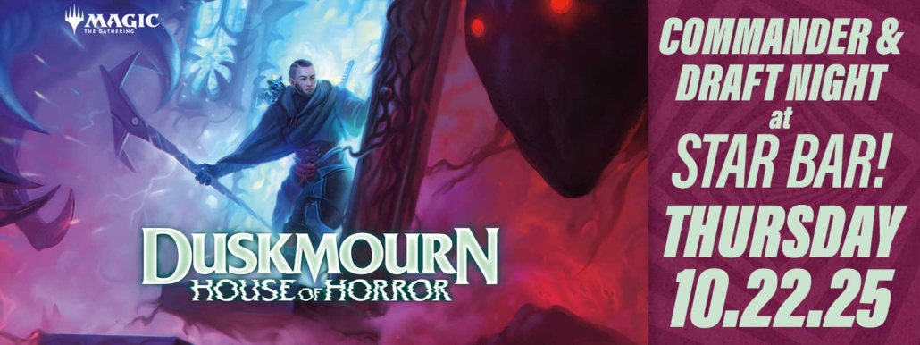 A big night of Magic, players! We’ve got a Draft, limited to 8 seats, and 24 seats for Commander play. That’s a lot of Magic, gang, but tickets are gonna go fast so register now!
